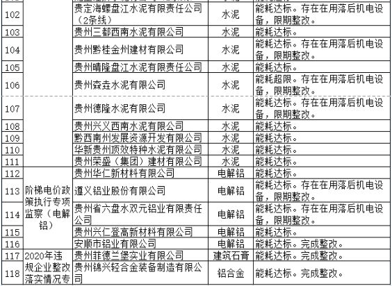 11月12日,貴州省工業和信息化廳公布2021年貴州省國家工業專項節能監察結果,118家企業在列,詳情如下: