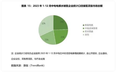 2023年1月-12月中旬電解水制氫企業統計口徑-綠氫項目市場份額