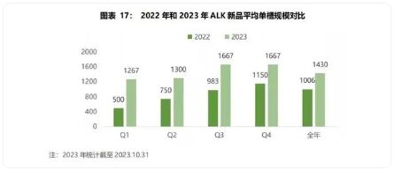 此外,在ALK制氫裝備上,2022年堿槽新品的平均單槽最大產氫量為1006Nm³標準立方米/小時h,2023年Q1、Q2、Q3對應的平均單槽規模分別為1267標準立方米/小時Nm³/h、1300標準立方米/小時Nm³/h、1667標準立方米/小時Nm³/h,呈大標方趨勢。目前,國內已有8家企業宣布下線2000標準立方米/小時Nm³/h電解槽。2023年9月,隆基氫能再次刷新了國內已發布產品的最大單槽產氫量紀錄,達3000標準立方米/小時Nm³/h。
